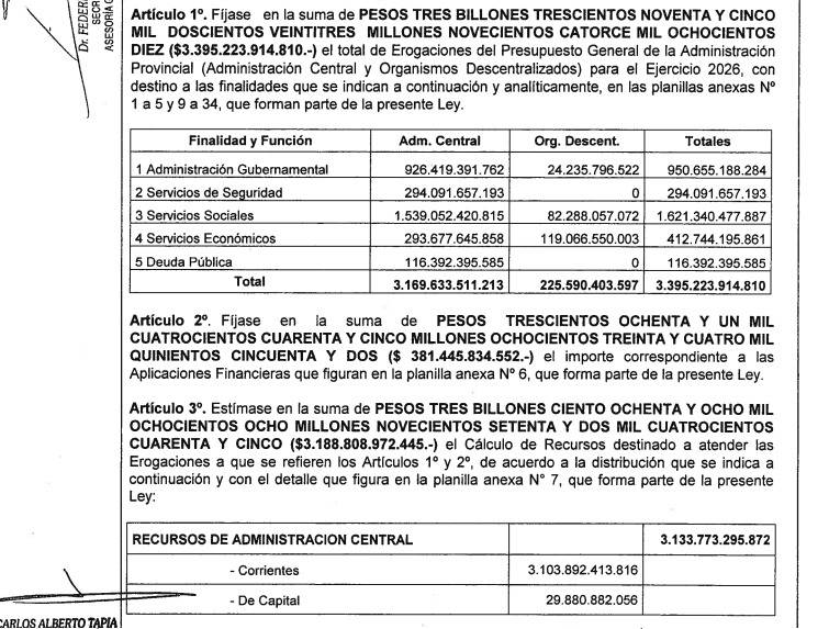 Torres envió a Legislatura el Presupuesto 2026: supera los 3 billones de pesos